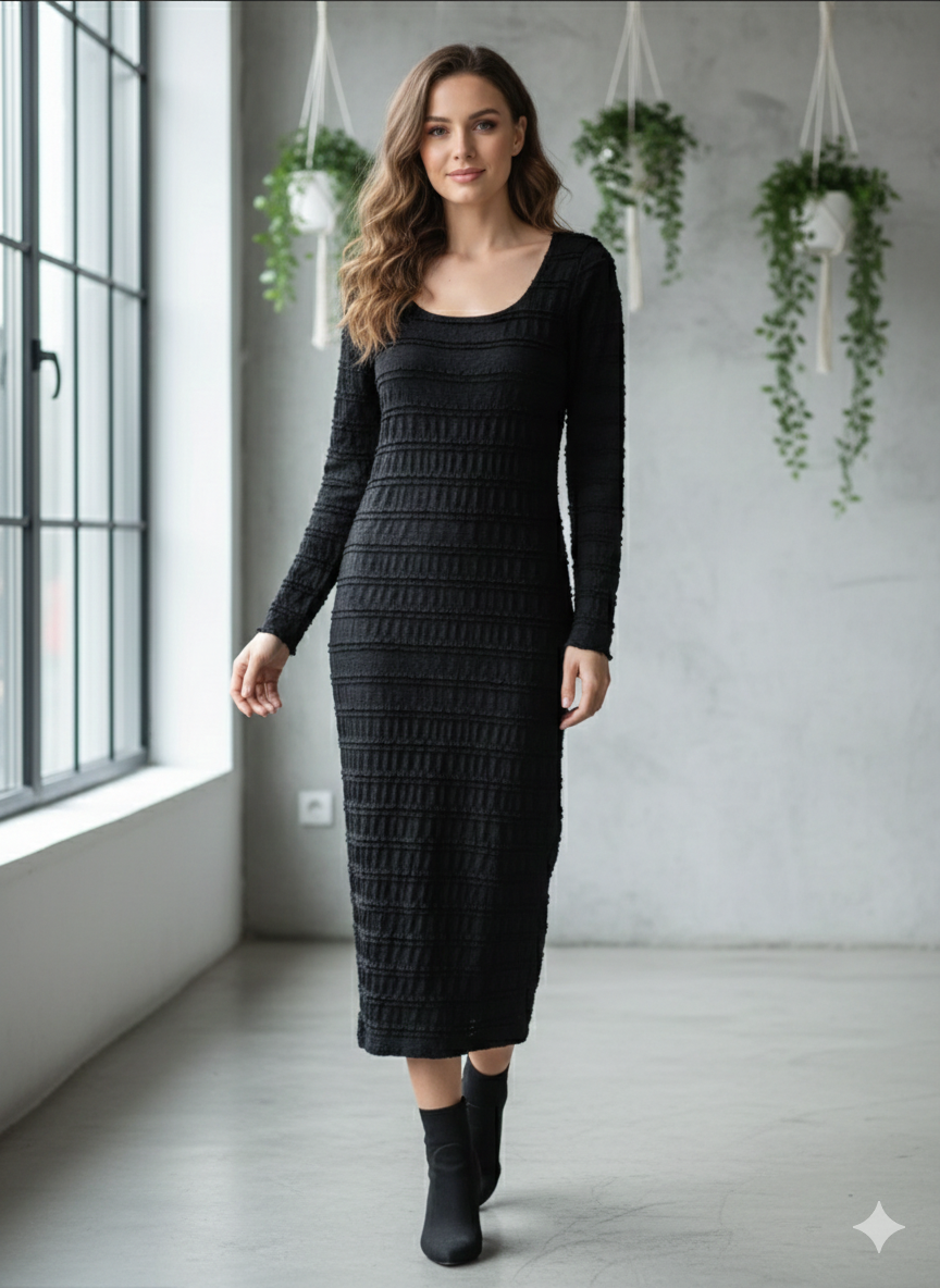 Vestido midi canelado